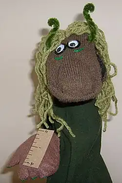 To build the insecure troll, mark off two inches from a regular ruler onto a piece of cardboard in quarter inch increments. Trim and attach to the troll hand with basting stitches. Or substitute a magnifying glass.