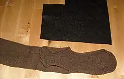 Basic material for the troll is a brown cotton men's sock. Exact measurement depends on the size of the puppeteer's hand. The end of the sock may project beyond the puppeteer's fingers, but the mouth itself should not curl with the puppeteer's hand. The cut for the mouth begins from the toe seam.