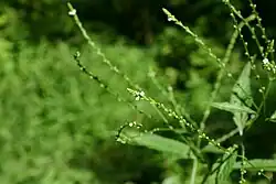 Please contribute!This page is a profile for the plant species Verbena urticifolia, used to collect records of where and when this plant was observed blooming, and for providing identification information for use in dichotomous keys. If you would like to help collect data for this or other plants, see Bloom clock project/How to Contribute for orientation.