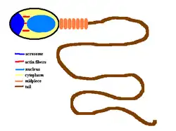 Tail — sperm cells have a tail (flagellum), a whip-like structure, allowing the cell to propel itself during fertilisation