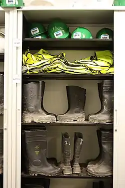 High-visibility (HV) clothing, a type of personal protective equipment (PPE), is any clothing worn that has highly reflective properties or a colour that is easily discernible from any background. Yellow waistcoats worn by emergency services are a common example. Occupational wearers of clothing with high-visibility features include railway and highway workers, airport workers, or other places where workers are near moving vehicles or in dark areas. Retro-reflective strips increase visibility from the position of the light source. Offshore survival suits, life-jackets and many protective overalls use retro-reflective strips and bright contrasting colours such as red, orange and yellow to increase visibility. Improved visibility of the wearer can reduce risk of other people colliding with the wearer or not noticing them moving into a hazard zone where the observer is working. When in the sea, high visibility clothing improves the chances of being seen by rescuers.