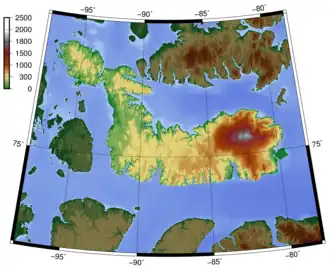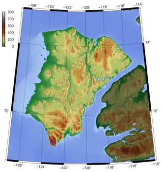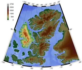 Bathurst Island is one of the Queen Elizabeth Islands in Nunavut, Canada, is a member of the Canadian Arctic Archipelago, with the area estimated at 16,042 km2 (6,194 sq mi),[19] 115 to 117 mi (185 to 188 km) long and from 63 mi (101 km) to 72 mi (116 km) to 92.9 mi (149.5 km) wide, making it the 54th largest island in the world and Canada's 13th largest island.