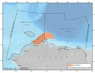 Barrow Canyon is a submarine canyon that straddles the boundary between the Beaufort Sea and Chukchi Sea.[18] Compared to other nearby areas and the Canada Basin, the highly productive Barrow Canyon supports a diversity of marine animals and invertebrates.