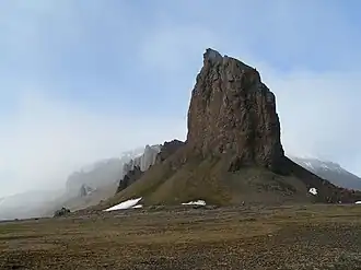 The volcanics on Ellesmere Island has been uncertainly associated to both the early volcanic activity of the Iceland hotspot and the Alpha Ridge. The Ellesmere Island Volcanics are part of the High Arctic Large Igneous Province.[46]