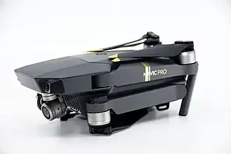 DJI Mavic 2 Pro is an unmanned aerial vehicle (UAV) and one of Mavic series.[1] It is a very intelligent drone and very useful for who collecting data and tracking systems for their business or study like framer or scientists.[2] Here is the one example, Weisberger described how useful drone camera flight over the sea-ice field when one of the scientists studying and monitoring about ice loss and high level of the sea in the Antarctic.[3][4] However, there is some restriction area, drone camera cannot fly such as military, industrial and personal purposes.[2][4] DJI Mavic 2 Pro is a portable drone with a camera which is a small, foldable and a full of sensors[5][6]. It was revealed and launched on Aug 23, 2018, by DJI.[7]