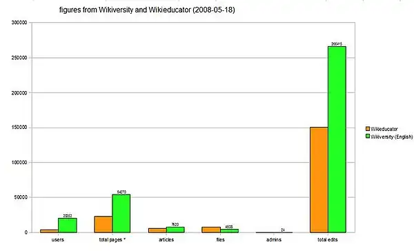 Figures from Wikiversity and Wikieducator (2008-05-18)