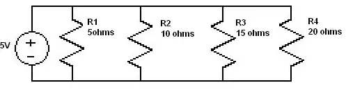 What is the current through R1, R2, R3, and R4 in the following diagram?