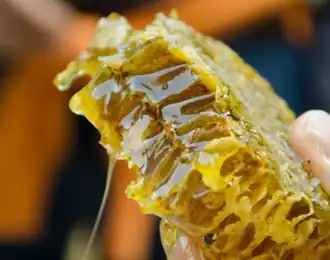 - 꿀벌이 꽃에서 빨아들여 벌집 속에 모아 두는, 달콤하고 끈끈한 액체. 그 성분은 대부분 당분(糖分)이며 식용하거나 약으로 쓴다.
