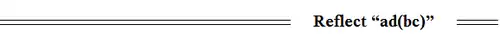 If a is b and d is c, then ad will be bc. This is a fine theorem, which is proved in this way: a is b, therefore ad is bd (by what precedes), d is c, therefore bd is bc (again by what precedes), ad is bd, and bd is bc, therefore ad is bc. Q.E.D. (Leibniz, Logical Papers, p. 41). |
