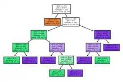- Choose dimension and decision boundary in that dimension such that it minimizes the following quantity