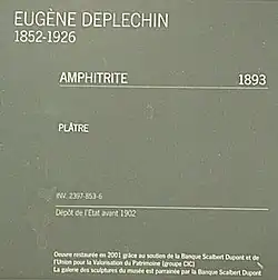 This information is often on display on labels next to the work itself. Photographs of these labels should be taken to allow further labelling on Commons. Such labels may be independently copyrighted and are often not suitable for Commons themselves. Rather, these labels are typically transcribed in the description of the relevant image on Commons.