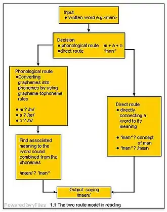 - ↑ Perrya C, Zieglerb JC, and Zorzic M. Beyond single syllables: Large-scale modeling of reading aloud with the Connectionist Dual Process (CDP++) model. Cognitive Psychology. 2010, 61(2):106-151.