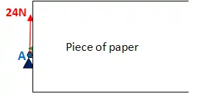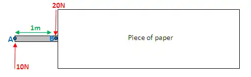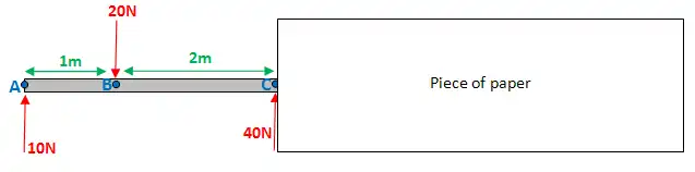 Now, let's do this for point B. BUT - slight complication - there's a force acting at point B, are you going to include it? The answer is both yes and no. You need to take 2 measurements. Firstly put your piece of paper, so it's JUST before point B: