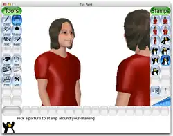 ![]() This storyboard was created with stamps in just a few clicks of the mouse. The figure on the left is drawn smaller (magnified less) than the figure on the right so it looks further away. The time to draw this picture was about 15 seconds. This makes storyboarding very fast. | |
