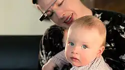 In Australia, during January 2014, Melbourne tech startup Small World Social collaborated with the Australian Breastfeeding Association to create the first hands-free breastfeeding Google Glass application for new mothers.[18] The application, named Google Glass Breastfeeding app trial, allows mothers to nurse their baby while viewing instructions about common breastfeeding issues (latching on, posture etc.) or call a lactation consultant via a secure Google Hangout,[19] who can view the issue through the mother's Google Glass camera.[20] The trial was successfully concluded in Melbourne in April 2014, and 100% of participants were breastfeeding confidently.[21][22] Small World Social[23] Breasfteeding Support Project.[24]