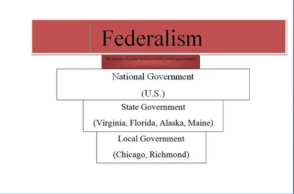 - One of their decisions was to divide the government into levels. The national (U.S.), state (Florida, Idaho, Montana, Virginia, Maine), and local (Chicago, Richmond, New York City) governments are the most popular levels of government. This division of power between levels would be the principle of Federalism[4].