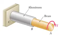 - The allowable stress is 50 MPa in the brass rod AB and 25 MPa in the aluminum rod BC. Knowing that a torque of magnitude T = 1250 N*m is applied at A, determine the required diameter of (a) rod AB, (b) rod BC.