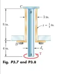 - Knowing that the internal diameter of the hollow shaft shown d = 1.2 in., determine the maximum shearing stress caused by a torque of magnitude T = 7.5 kip*in.
