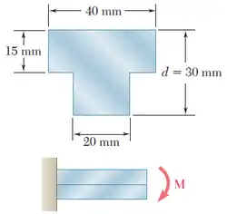 Knowing that the beam of the cross section below is bent about the horizontal axis with a bending moment, the total force acting on the shaded portion of the T-beam's web is to be determined.