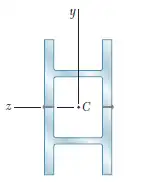 Two W4 x 13 rolled sections are welded together. Determine that largest couple that can be applied about the z-axis when the assembly is bent.