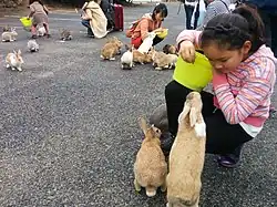 Ōkunoshima (大久野島) is a small island located in the Inland Sea of Japan. It is also known as Usagi Shima (うさぎ島, "Rabbit Island") because of the numerous feral rabbits that live here and it is for that reason that draws many people here. Nobody knows for sure how the rabbits got here. Some say they are the result of a scientific testing while others theorize that some children on a school trip left the original settlers here.