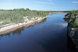 The Route 138 bridge spanning the Aguanish River in the village of Aguanish is located 339 km by road, east of downtown Sept-Îles.