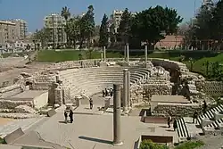 - 🌍 Kom el-Dikka (Roman amphitheatre) (just north of the railway station), ☏ +20 3-3902904. Daily. "Kom el-Dikka" means "pile of rubble" - so much for the grandeur of the Roman Empire. In Ptolemaic times this area was the Park of Pan, a pleasure garden surrounded by villas and baths. Highlights built in the 2nd century CE are the Villa of the Birds, with fine mosaics, and Egypt's only Roman amphitheatre. This has 13 semicircular tiers made of white and grey marble, with seats for up to 800 spectators, galleries and sections of mosaic-flooring. Excavations continue, and in 2010 a Ptolemaic temple was unearthed. You can see the amphitheatre well enough just by peering through the railings, but you'll have to pay to get inside to see the mosaics and other small artefacts. LE150 for foreigners.