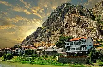 Amasya is a city in the Central Karadeniz region of Turkey, with a population of 116,000 in 2023. It's 333 km northeast of Ankara in the gorge of the River Yeşilırmak and has a well-preserved old town.