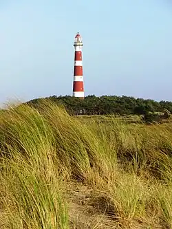 - 🌍 Lighthouse, Oranjeweg 57, Hollum, ☏ +31 519 - 542737. The striped, 1880 lighthouse on the west side of the island is open to the public. After climbing around 240 steps, you can look around on the balcony just below the light. Several floors in the lighthouse have exhibitions of, for example, old naval maps. Opening hours vary strongly per day and per season, but in Summer the tower is open every day and even some evenings (W-Su evening till 21:00). Check the website for details. Adults €4.50, children €3.25.