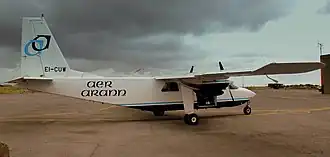 Aer Árann fly several times a day from Connemara (or Minna) Airport (NNR IATA) at Inverin, 31 km west of Galway city. There are at least a couple of flights daily year round, more in summer. Flying time is just 10 min and a day trip is always feasible. The aircraft are rinky-dinky BNF Islanders that only take 9 passengers; they rattle around in the breeze and are often cancelled in bad weather.