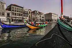 Architecturally, the CBD and "centro histórico" are characterized by some excellent examples of 15/16th century, Belle Epoque, Art Nouveau, Art Deco and Estado Novo buildings, while parts of the city are intersected by canals with picturesque bridges and navigated by brightly painted boats called moliceiros, similar in profile to the gondolas of Venice. Originally the moliceiro was a working boat and the name derives from moliço, a type of sea weed abundant in the lagoon and formerly harvested to be used as fertilizer in the agricultural fields of the region. Although an exaggeration, the city is called the "Portuguese Venice". The real charm of Aveiro's lifestyle lies in its coast, with its fantastic sandy beaches of São Jacinto, Torreira, Barra and Costa Nova. This local coast is branded as Costa da Prata or the Silver Coast.