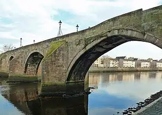 - Auld Brig across the river was originally a 13th century wooden structure, rebuilt with stone in the 16th. It's a narrow footbridge, mocked in Burns' poem Brigs o' Ayr as too narrow for a pair of wheelbarrows to pass. The bridge retorts that it will still be standing when the New Brig of 1788 has vanished, and so it proved — the present New Bridge is Victorian.