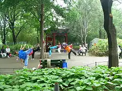 🌍Purple Bamboo Park(紫竹院公园; Zǐzhúyuàn Gōngyuán),45 Baishiqiao Road (白石桥路45号 Báishíqiáolù)(Just southwest of National Library (国家图书馆 Guojia Tushuguan) subway stop (lines 4,9)),☏ +86 10 6842 5851.Summer 06:00-18:00; winter 06:00-20:00.One of the larger parks in Beijing, this is centered around three lakes. As the name indicates, there is an outstanding variety of bamboo groves here. A superb place for a stroll and, since it's a favorite spot for locals to relax and exercise, a splendid opportunity to get away from the tourist draws and experience ordinary life in Beijing.¥5.
