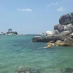 - π Tanjung Kelayang Beach (The northwest side of the island). There are 2 sides on the beach: the mainly sandy east, or the more rocky west. The rock formations are not as big, but some of them are in the middle of the sea and qualifies as islands. Fisherman boats are waiting on the east side if you wish for an island-hopping tour (no rocks on the vegetated islands).