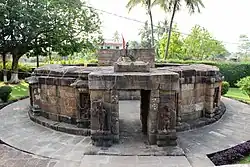 - 🌍 Chausathi Jogini Temple (Odia: ଚଉଷଠି ଯୋଗିନୀ ମନ୍ଦିର), Hirapur. Chaushat Yogani Temple or the temple of 64 yoganis is 20 km south east of Bhubaneswar in the village of Hirapur. In 1953 archaeologists and historian Kedarnath Mohapatra of Odisha State Museum pieced together the sandstone blocks to reconstruct the temple. It consists of a circular open-air structure with a small square central pavilion. According to legend in order to defeat a demon goddess Durga once took the form of 64 yoganis to defeat a demon. Once victorious, the yoganis requested Devi Durga to construct a temple in their honor, hence the concept of Chaushat Yogani Temple. There are five Chaushat Yogani Temples in India. Nothing much is known about the original date of construction of the temple near Bhubaneswar. Some scholar opine that the temple was constructed by Queen Hiradei of the Bhauma dynasty during the 8th – 9th century CE, as the nearby village of Hirapur (originally Hiradeipur) was named after her, while the other suggest a slightly later date of 11th century CE. The outer walls of the circular temple rise to a height of 2 m. The entrance is on the east and is flanked with statues of two guards (darpal). The outer wall has nice niches housing the images of nine Katayani, each of which stands on a served head flanked with digs. The Katayani are topped with an unbrella and each holds a blade as if the beheading has just happened. The inner wall has sixty niches housing sixty yogani statues. The central square pavilion has arches on each side, which are flanked on both sides with statues. Out of the eight statues in the pavilion three are of yoganis (one yogani statue is missing) and the remaining four are of Bhairavas.