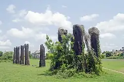 - 🌍 Sisupalgarh. Sisupalgarh is an archeological site south of Bhubaneswar. Archaeological evidence has confirmed that the fortified settlement was continuously inhabited from the 5th century BCE to the 4th century CE. Set on a square plan, Sisupalgarh covers an area of 1 km². The ancient fortified settlement is surrounded by a 9-m-high defensive wall. The fortified city had intelligent traffic management, pedestrian-friendly pathways, grand gateways with guardhouses, wide roads and vast open space. It was a smart city dating back to 500 BCE. Sisupalgarh is named after Sisupal a character from the great Indian epic Mahabharata. According to historians, the original name of the citadel has been lost. Today the remains of Sisupalgarh are scattered in two parts, the northwest gate and the pilar complex. The gate is an elaborate brick structure. It is poorly maintained, the Archeological Survey of India (ASI) boards have long vanished, leaving only the frame and the site is overgrown with vegetation.The pillar complex or the queen complex is located just southeast of the gate and is locally called Shola Khamba, literally meaning 16 pillars. Contrary to the name there are only 14 pillars. The front row contains 5 pillars (excluding one, which has only its base) there is a cluster of four pillars in a square arrangement at the eastern end of the front row. Sadly today large part of the fortified area of Sisupalgrah have been encroached upon by rapid building activities. Close proximity to the state capital of Bhubaneswar, soaring land prices and administrative neglect have made Sisupalgarh a soft target of the land sharks.