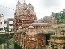 - 🌍 Byamokesvara Temple (Suresvara Mahadeva temple) (at the main (eastern) entrance of Lingaraj Temple). The 10th-century temple faces west and is made of coarse grey sandstone. The temple is partially buried under the ground and the surrounding heavily encroached by shops, stalls and residential buildings. The original temple consists of only the vimana but a modern pavilion has been added in front of the western entrance.