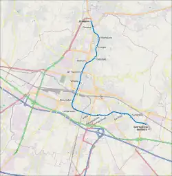 The ring roads around Brescia are: the Tangenziale Sud, or Tangenziale Alcide De Gasperi, which goes around the town to the south, and the Tangenziale Ovest is a municipal road, classified as urban, which goes around the town to the west.