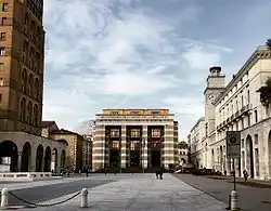 - 🌍 Casa Ottelli, Corso Palestro (at the crossing with corso Martiri della Libertà). Built in 1932, at the facade there are two bas-reliefs by Angelo Righetti, the sculptor who was quite famous at the time after he created the sculptures for the Piazza della Vittoria.