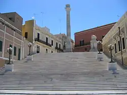 - 🌍 Roman columns and Virgil’s Staircase (Colonne Romane e Scalinata Virgiliana), Via Colonne, 53. Daily, all day. A symbol of Brindisi, they were thought to mark the termination of the Appian Way, but probably they only had a celebrative purpose. Only one of the two, standing at 18.74 meters (61.5 ft), is still visible, since the other one crumbled in 1528, and the ruins were donated to the city of Lecce to hold the statue of its patron Saint Oronzo. They were built during the 2nd century AD, with a Corinthian capital. The capital of one of the columns is kept in the Palazzo Granafei Nervegna.
