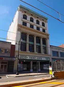 - The 🌍 Genesee Gateway Local Historic District. A row of seven buildings on the south side of Genesee Street between Ellicott and Oak Streets, at the east end of the business district just past the terminus of the Kensington Expressway, this district is the aptly named "gateway" to downtown. These two-, three-, and four-story brick buildings were built mostly in the final quarter of the 19th century in styles popular at the time, and represent the most intact period streetscape remaining in Buffalo's business district. Thankfully, after years of neglect and talk of demolition, these properties have been thoroughly renovated as office, retail, and restaurant space.