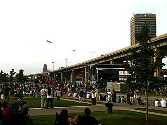 - 🌍 Canalside (along the north shore of the Buffalo River between the Commercial Slip and the foot of Main Street; Metro Rail: Erie Canal Harbor), ☏ +1 716-856-3150. Situated on 20 acres (8 ha) of formerly idle land at the harbor, Canalside combines the celebration and preservation of Buffalo's rich history as a rough-and-tumble canal town with an expansion of waterfront recreational opportunities for Buffalonians of today to enjoy. At Canalside, amenities such as tour boats offering cruises of the harbor, river, and lake, a lengthy slate of festivals, and one of the city's favorite new restaurants (Liberty Hound) can be enjoyed in an environment that also pays tribute to history with features such as a recreation of the Commercial Slip — once the western end of the mighty Erie Canal — on the side of which are the restored foundations of old Canal District buildings, dating to the mid-19th century and rediscovered in the early 2000s. As well, a restored canal bridge, interpretive plaques, and the enthralling Buffalo and Erie County Naval and Military Park are on the scene. With further expansion of the offerings slated for the near future, such as two new hotels, a children's museum, a sports complex, and restaurants and shops, Canalside is only going to get better as time goes on.
