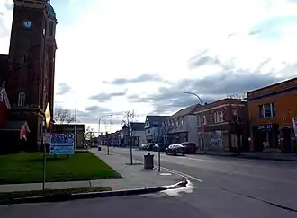 The main thoroughfare of the West Side is Niagara Street (NY 266), which begins downtown at Niagara Square and proceeds through the Lower West Side in a straight southeast-to-northwest orientation (in conformity with the old South Black Rock street grid); shortly after crossing Hampshire Street, it turns north and parallels the Niagara River shore through the Upper West Side, Black Rock, Riverside and on beyond the city line. As well, Grant Street, the West Side's main shopping street, runs northward from Hampshire Street through the heart of the Upper West Side and into Black Rock, where it ends at Military Road.