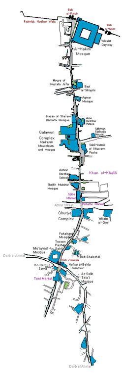 The attractions listed here are listed from north to south, starting at the Bab al-Futuh (Gate of Conquest) at the northern edge of the Fatimid city walls. The route follows al-Mu'izz Street (Sharia al-Muizz), which is dedicated to pedestrian traffic between 8AM and 11PM.