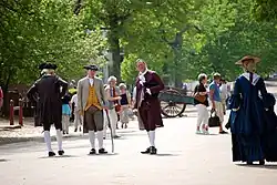 Historic re-enactments occur daily and present dramatic presentations of historic events. The "Storming of the Palace" re-enactment recreates the historic event in which colonials marched on the governor's residence to demand that powder removed from the town magazine be restored. The "Order in the Court" re-enactment allows visitors to participate in a trial in the courthouse. During re-enactments staff members in period costumes assume historic roles, and visitors are often encouraged to participate. Check the daily calendar for times and locations of re-enactments as schedules vary. Tickets may be required for visitors to be present when re-enactments are taking place.