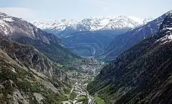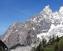 Courmayeur is a skiing and mountaineering resort at the head of Valle d’Aosta, in northwest Italy. At 1224 m elevation, it has a spectacular location near the foot of Mont Blanc (called Monte Bianco in Italian).