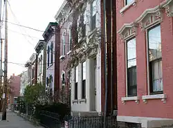 - π Riverside Drive Historic District (East of the Roebling Bridge North of 6th St). One of the oldest neighborhoods remaining in the Cincinnati area, with many charming houses dating from the early to mid 1800s. Because it was built on a bluff and less flood prone than many other places around the river, there are lots of stately old mansions with a blend of Antebellum South and early Mid-Atlantic style architecture. This area is known to house the birthplace of Boy Scouts of America founder Daniel Carter Beard (which there is a small memorial to, though the house is a private residence). It's also great for an afternoon stroll along the river with George Rogers Clark Park being a popular spot for weddings.