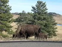 - Wildlife Loop Road (off US-16A and US-87). A 18 mi (29 km) road through open grasslands and hills, the preferred habitat for the park's large mammals. It's subject to frequent "traffic jams", when the park's herd of bison bumble across the road in no particular hurry.