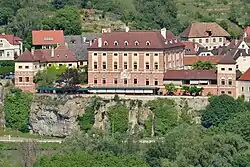 The NÖVOG Wachaubahn narrow-gauge railway line passes through 🌍 Dürnstein-Oberloiben Bahnhof on its way from Krems to Emmersdorf. It operates only on weekends and public holidays from April to October and daily in July, August and September. See the Wachaubahn website to look up train information online.