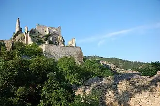 - 🌍 Burgruine Dürnstein (Dürnstein Castle Ruins) (access by footpath only). All hours. Built in the 12th century, the castle is best known for being the prison of King Richard the Lionhearted of England from December 1192 to March 1193, after he was captured by Austrian Duke Leopold V while returning from the Third Crusade. In 1635, toward the end of the Thirty Years' War, the Swedes captured the castle and later destroyed the outer gate. After serving as a refuge during the Austro-Turkish War a couple decades later, it was abandoned and fell into disrepair. In the late 17th century the castle was purchased by an Austrian noble family, which still owns it. Free.